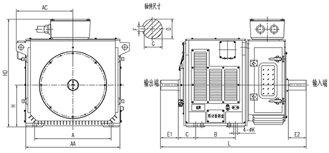 表1 YORQ短系列永磁耦合調速器外形及安裝尺寸表(機座號355~630)