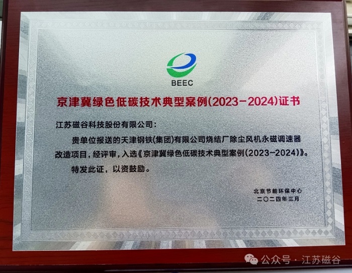 5月17日,正值第34個全國節能宣傳周之際,一場以“發展綠色新質生產力,推進京津冀協同發展”為主題的“2024京津冀綠色低碳技術案例推介交流會”在北京盛大舉行。本次交流會由北京節能環保中心、海淀區發展改革委聯合主辦,天津市節能環保中心、河北省綠色發展服務中心協辦,旨在推廣綠色低碳技術,促進京津冀地區綠色協同發展。 在頒獎環節,包括江蘇磁谷在內的19家企業榮獲北京節能環保中心發布的《京津冀綠色低碳技術典型案例(2023-2024)》殊榮。入選案例時效性強,充分反映了綠色低碳領域新進展,對引導京津冀地區用能單位采用先適用的綠色低碳技術產品,促進企業能效提升、產業升級具有重要的引領與促進作用。